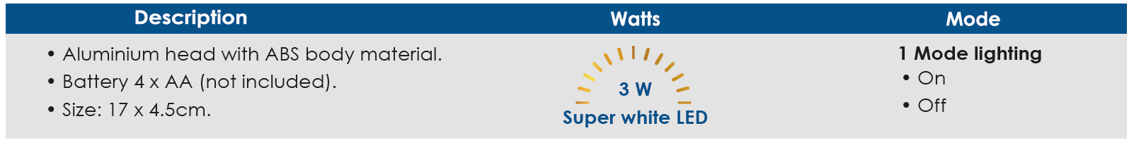 MAZUZEE - 3W Super White LED Diving Torch - Aluminum Head MZDT02
